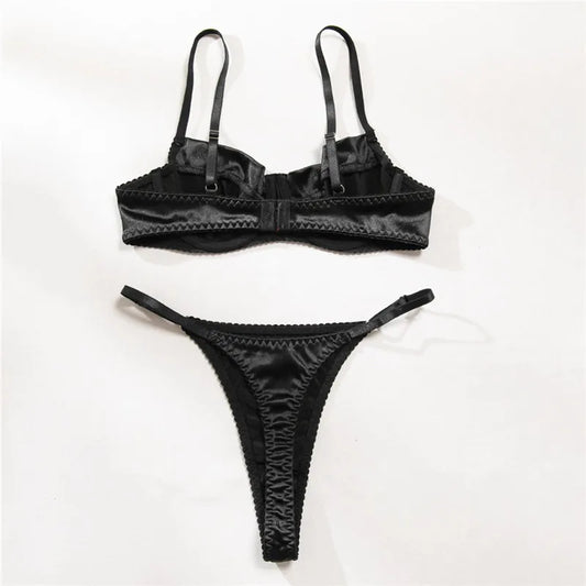 Women Sexy Bra Brief Sets Seamless Solid Black Romantic Lingerie Vintage Thin Underwear Comfortable New Arrival Exotic Sets